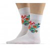 Tradiční folklorní vzorování na bílém bavlněném podkladu. Folklorní ponožky Moumou Cérka naladí každý tvůj krok do tónů tradice a folkloru. Nechť jsi každým krokem šťastnější!