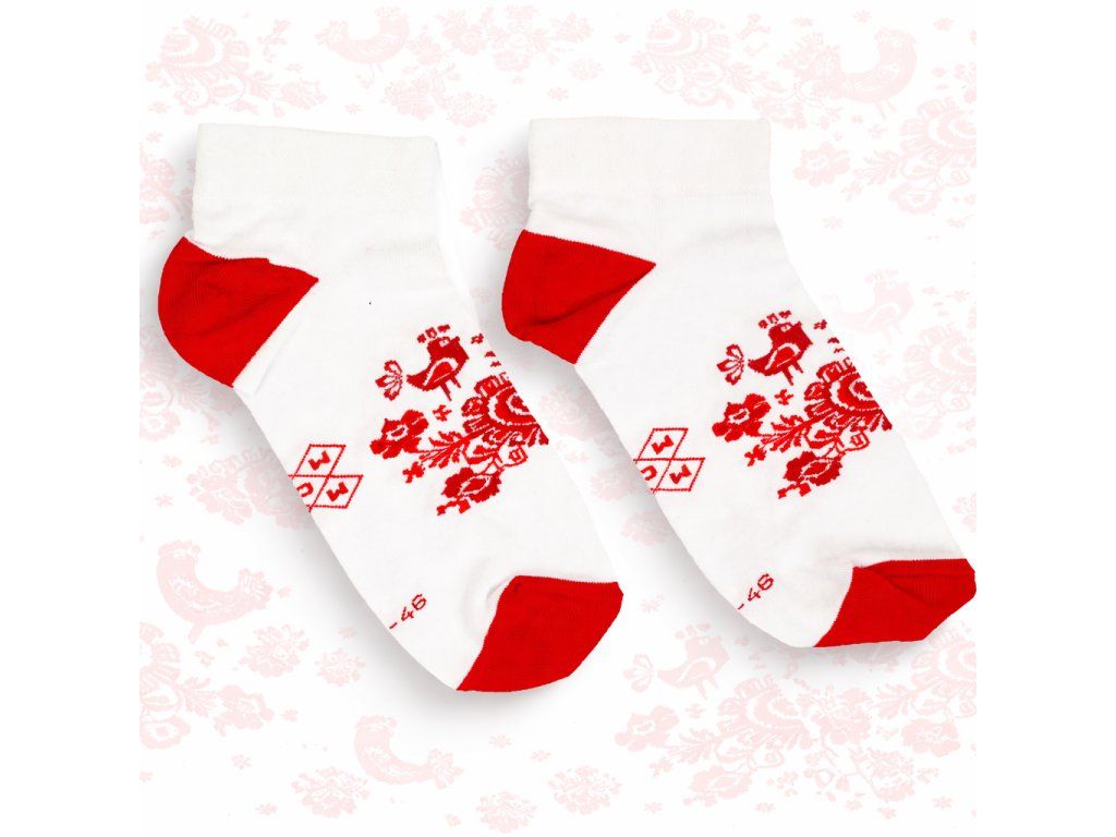 Kotníkové slovácké ponožky s tradičním vzorem a decentní kombinací červené a bílé barvy. Díky hebké bavlně je budeš milovat. Ideální folklorní dárek pro milovníky tradice..