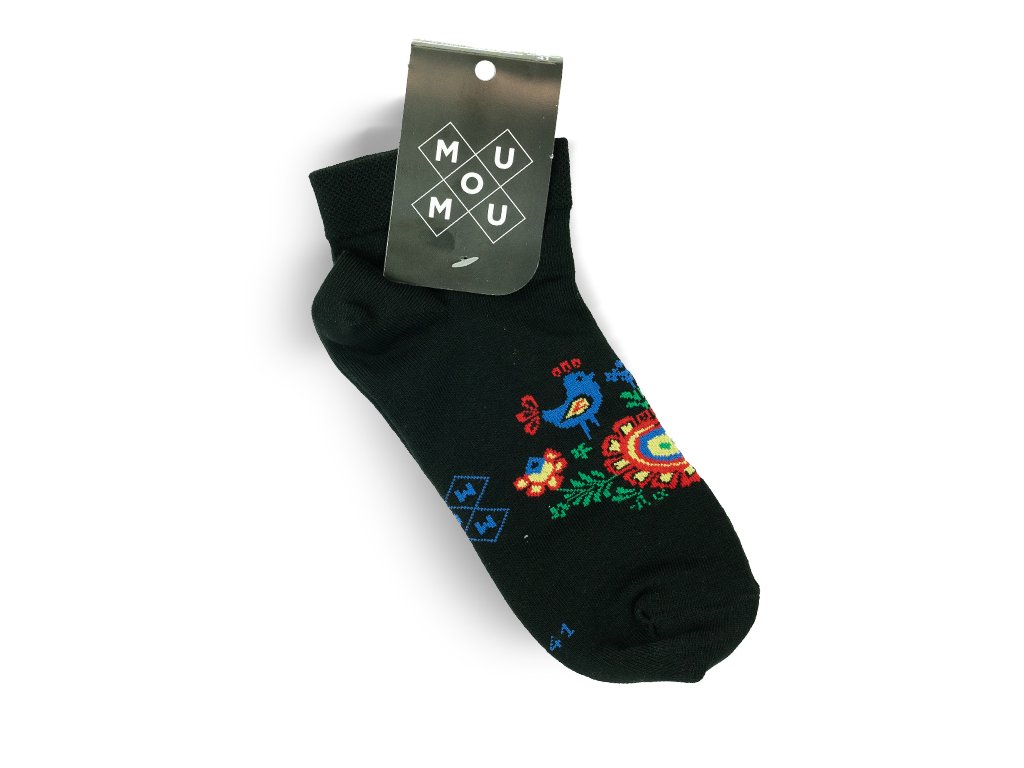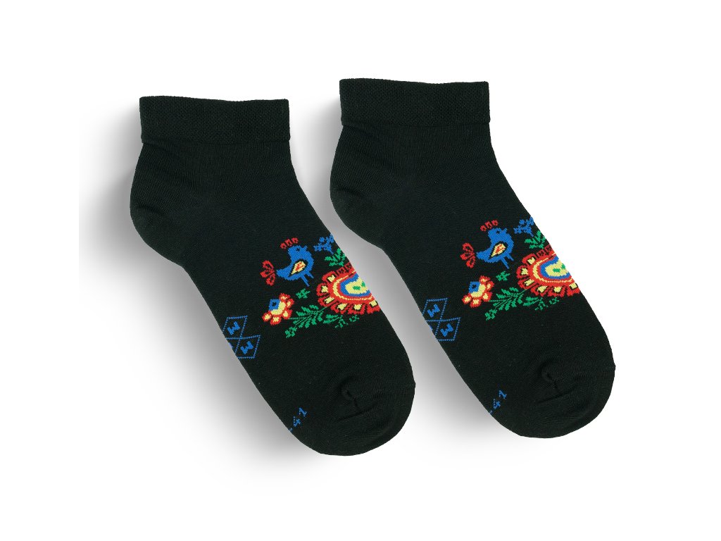 Tmavé kotníkové slovácké ponožky s tradičním vzorem a barevnou variantou používanou po staletí. Díky hebké bavlně je budeš milovat. Ideální folklorní dárek pro milovníky tradice..