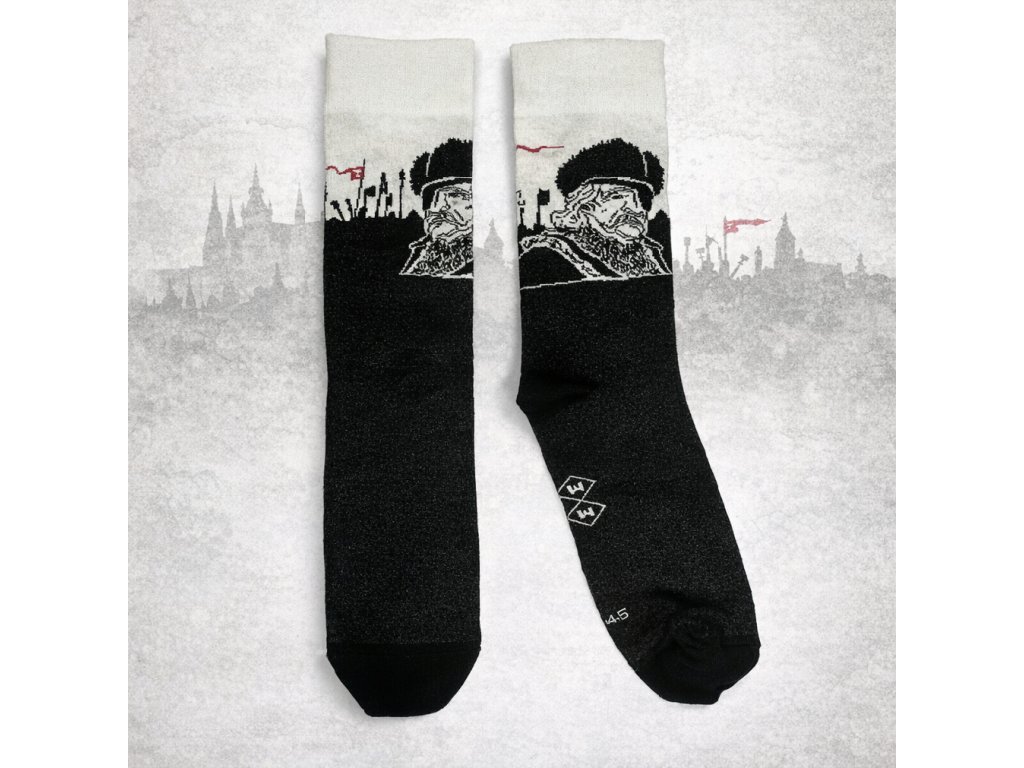 Ponožky s jeho siluetou jsou stylovým připomenutím, že česká odvaha má hluboké kořeny.