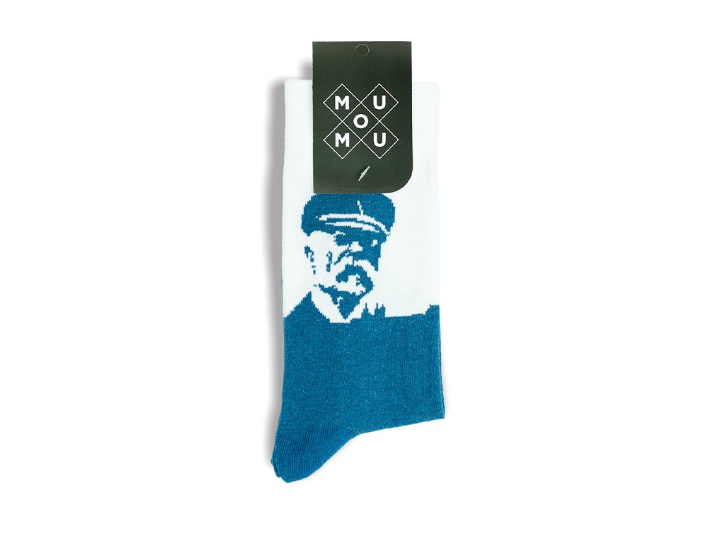 Jsme hrdí na svůj národ a proto jsme s radostí vytvořili kolekci, kde nás bude náš bývalý prezident reprezentovat každým krokem. Bavlněné ponožky a na nich Tomáš Garrigue Masaryk se siluetou Prahy.