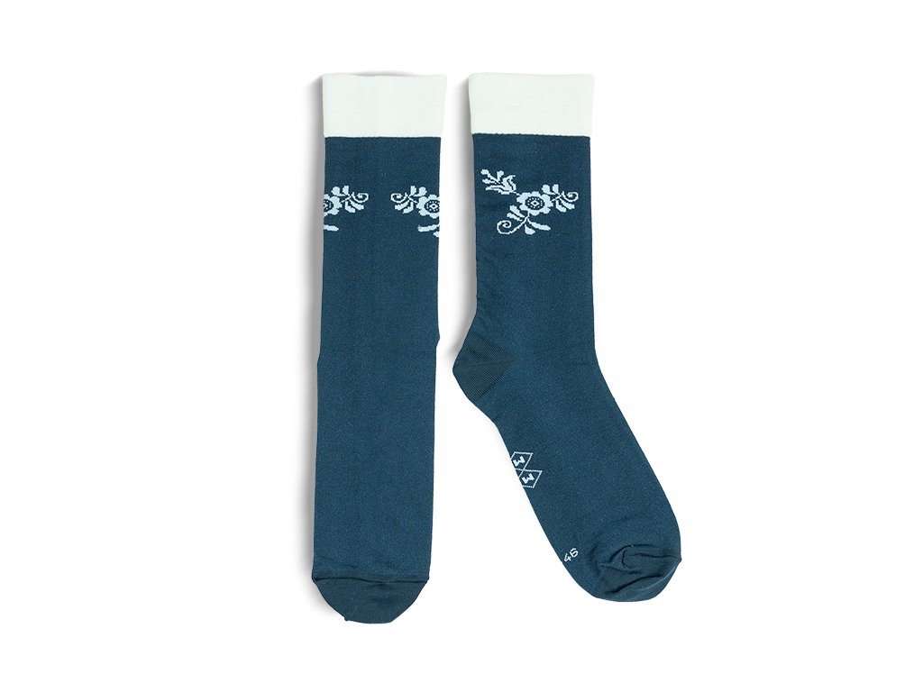 Snad nejznámější tradiční vzor naší země vetkán do ponožek z kvalitní česané bavlny. Při výrobě ponožek dbáme na ten nejpřesnější odstín temné modré, abychom co nejvíce vytvořili dojem tradičního modrotisku. Ponožky jsou vyrobené s láskou, na českých strojí a to v samotném srdci Slovácka.