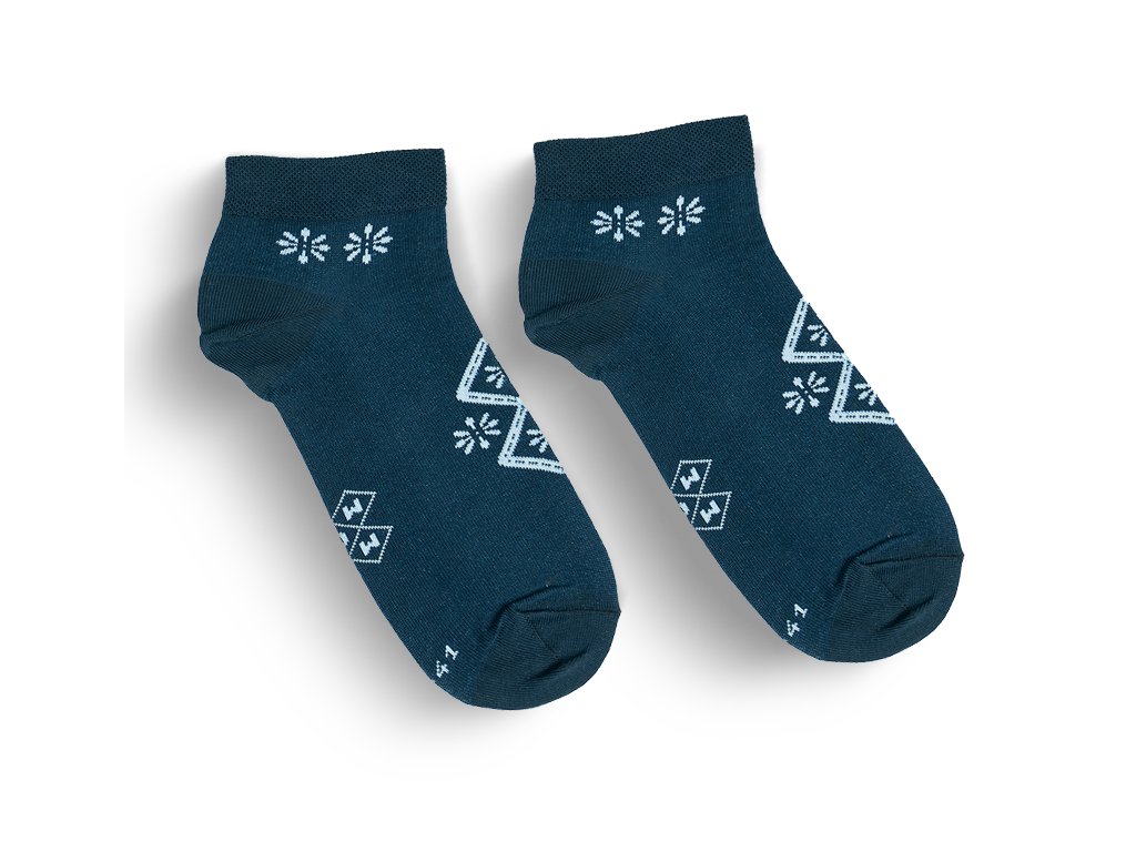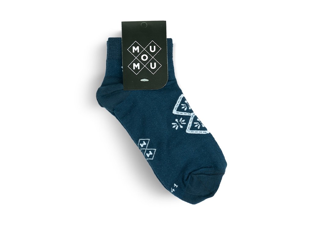 Snad nejznámější tradiční vzor naší země vetkán do ponožek z kvalitní česané bavlny. Při výrobě ponožek dbáme na ten nejpřesnější odstín temné modré, abychom co nejvíce vytvořili dojem tradičního modrotisku. Ponožky jsou vyrobené s láskou, na českých strojí a to v samotném srdci Slovácka.