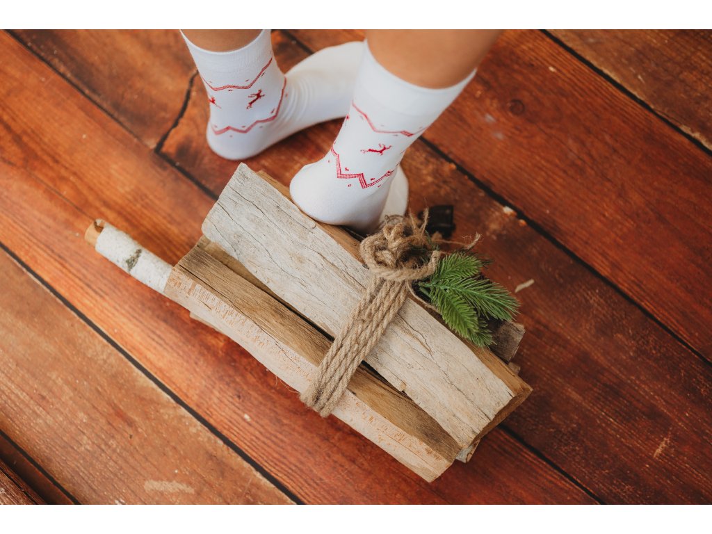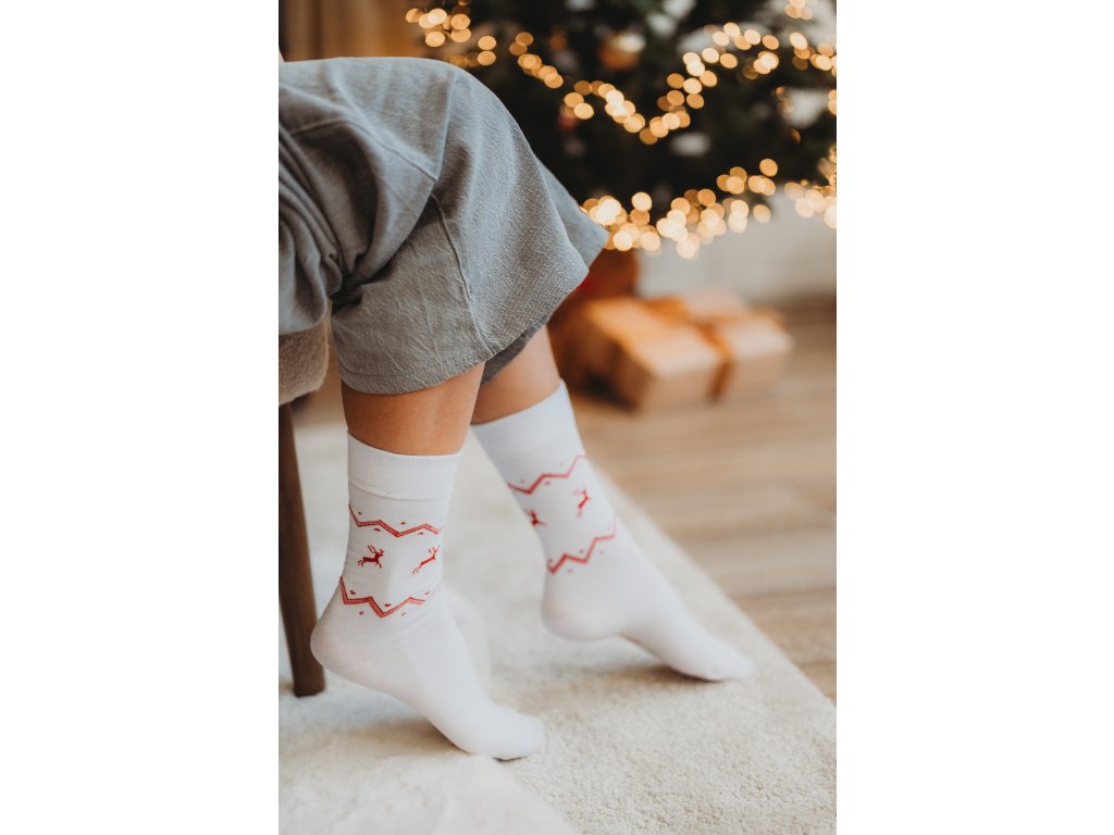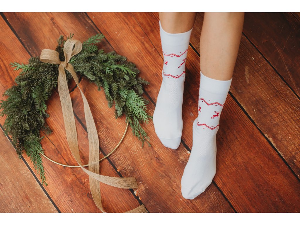Vánoční ponožky plné českých vánoc. Také u vánočních ponožek vnímáme důležitost tradice a historii Česka. Decentní vzor vánočních symbolů a jelenů protkané kvalitní česanou bavlnou.