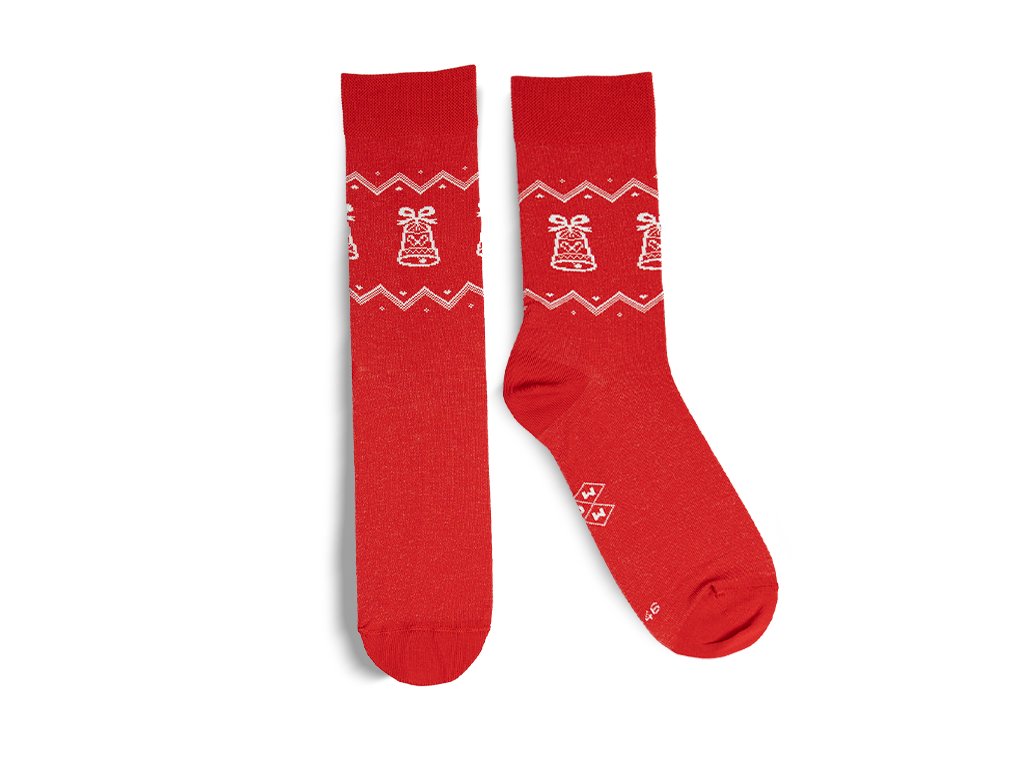 Vánoční ponožky plné českých vánoc. Také u vánočních ponožek vnímáme důležitost tradice a historii Česka. Decentní vzor vánočních symbolů a zvonečků protkané kvalitní česanou bavlnou.